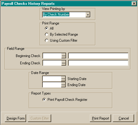 Payroll Check History Reports Screen