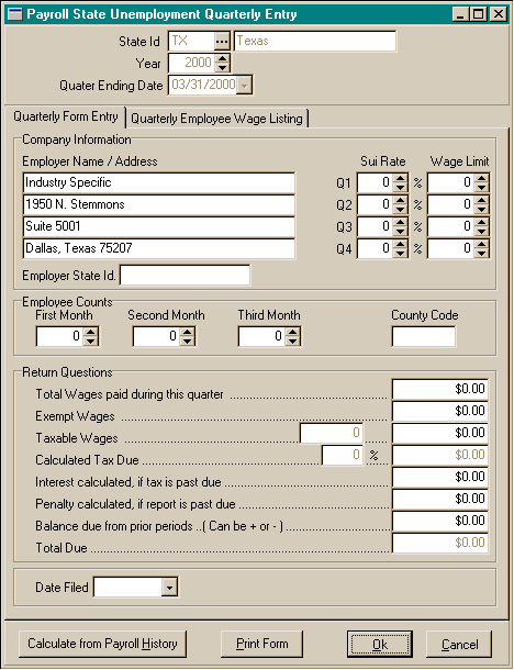 State Unemployment Quarter Entry Screen – Quarterly Form Entry