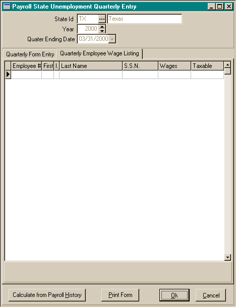 State Unemployment Quarter Entry Screen – Employee Wage Listing