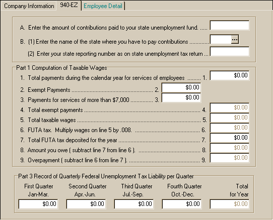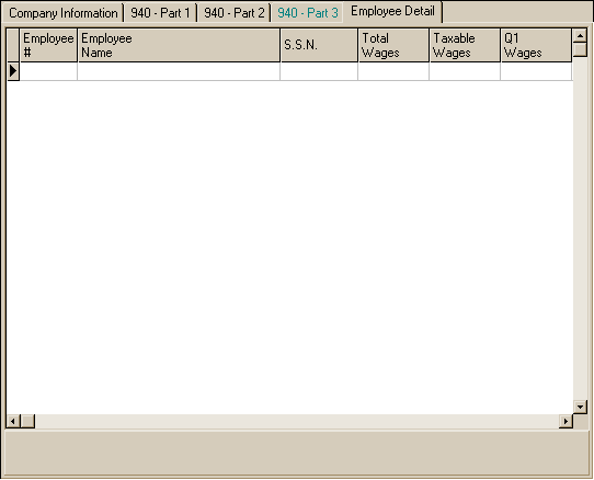 Payroll Federal 940 Annual Tax Return Entry Screen – Employee Detail