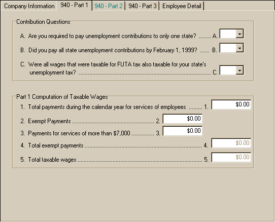 Federal 940 Annual Tax Return Entry Screen – 940 - Part 1