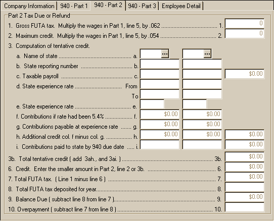 - 940-Part 2: The form 940 Part 2 entry items.