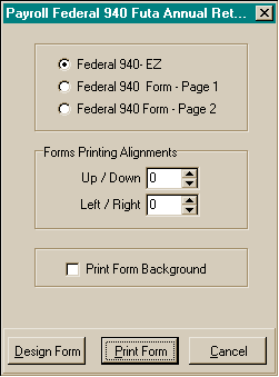 – Page 1’ prints the first page of the 940 return. If ‘Print Form Background’